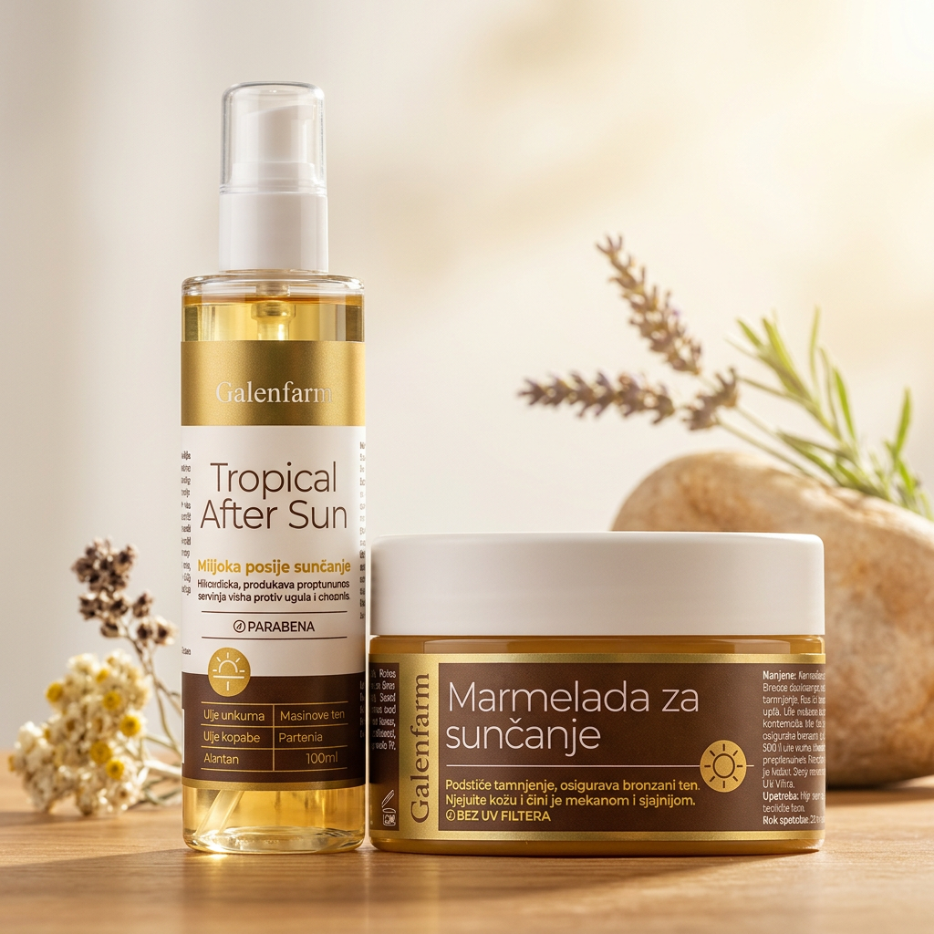 Galenfarm preparati za zaštitu od sunca koriste mineralne UV-filtre i biljne ekstrakte koji podržavaju prirodne obrambene mehanizme kože protiv fotooksidativnog stresa i UV-oštećenja.